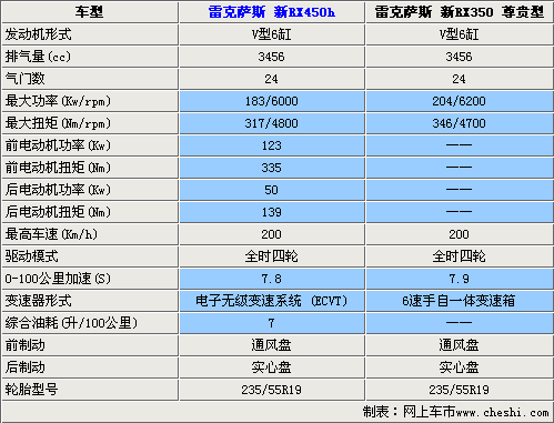 在動(dòng)力性能方面,雷克薩斯RX450h采用了先進(jìn)的油電混合動(dòng)力系統(tǒng),因此這款車(chē)的綜合油耗僅為7L,更加適合消費(fèi)者在城市中使用。在動(dòng)力性能方面,由于RX450h在配有3.5升V6發(fā)動(dòng)機(jī)的同時(shí),還配了兩個(gè)電動(dòng)機(jī),所以在動(dòng)力輸出方面,要明顯高于汽油版車(chē)型。在變速箱方面,雷克薩斯RX450h搭配了電子無(wú)級(jí)變速箱可使換擋更加平順,提升乘座舒適性,RX350的變速器則是6速手自一體變速器,駕駛者完全可以充分的享受到駕駛的樂(lè)趣。