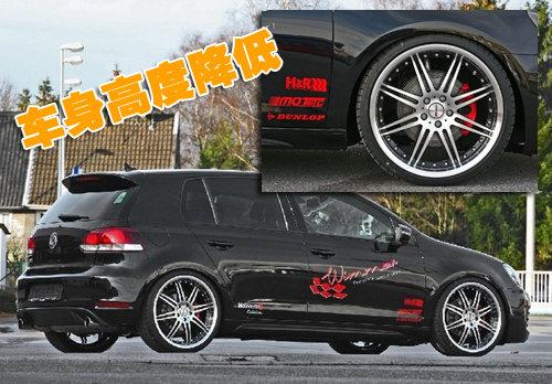 高爾夫GTI-RS改裝版在外形上并沒有改裝的過于張揚,為了增強高速穩(wěn)定性,懸架經(jīng)過了加強改裝,車身高度降低。共有采用18、19、20英寸三種輪轂尺寸可選,并且配備鄧祿普的Sport Maxx GT競賽級輪胎,抓地力出色提升了整體的操控性。