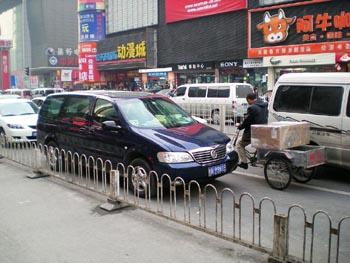 擁擠的中關(guān)村占道停車