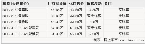 據(jù)天津中汽南方沃爾沃4S店的銷售人員介紹,目前除了入門級2.5T智尚版與頂級配置的3.0 T6 AWD智尊版兩款車型無現(xiàn)車之外,其它3款車型分別有不同程度的優(yōu)惠,熱銷車型 2.5T智尊版的售價已經(jīng)跌至40萬元以下,而3.0 T6 AWD智雅版的優(yōu)惠幅度達到了近6萬元。現(xiàn)車以黑色以及銀色居多,其它顏色預定等待一個月左右。