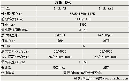 從江淮悅悅的整車參數(shù)上來(lái)看,這款新車的長(zhǎng)寬高尺寸與同級(jí)別車型接近,相比之下,悅悅的整車寬度更具優(yōu)勢(shì)。因?yàn)檎噷挾冗_(dá)到1640毫米,江淮悅悅的前后輪距達(dá)到了1415毫米和1400毫米,提高了整車的穩(wěn)定性。而且悅悅的軸距達(dá)到2390毫米,比奇瑞QQ3略有優(yōu)勢(shì)。