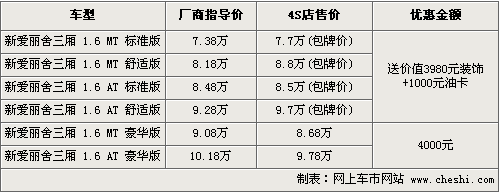 目前普通版新愛麗舍的部分車型采用了包牌銷售的方式,其中包括標(biāo)準(zhǔn)手動(dòng)型、新愛麗舍標(biāo)準(zhǔn)自動(dòng)型、新愛麗舍舒適手動(dòng)型、新愛麗舍舒適自動(dòng)型。只要購買其中任意一款車型。而另外兩款1.6豪華版并未在此次活動(dòng)范圍內(nèi),但購車可以優(yōu)惠現(xiàn)金4000元。
