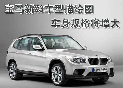新寶馬X3車型的車身尺寸與第一代X5車型差不多,擁有許多圓潤的外觀設(shè)計(jì)以及動(dòng)態(tài)的側(cè)面車身線條,有所增大的雙腎形前進(jìn)氣隔柵傳承了寶馬的設(shè)計(jì)風(fēng)格。此外了為了給即將推出的寶馬X1讓出市場空間,因此新X3車型的車身尺寸增大也就是很自然的事情了。