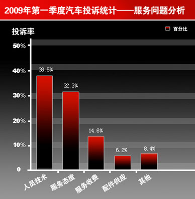 中新網(wǎng)4月24日電 日前,中國質(zhì)量協(xié)會用戶委員會、車人網(wǎng)聯(lián)合發(fā)布了2009年一季度中國汽車產(chǎn)品質(zhì)量與服務(wù)質(zhì)量分析報告。統(tǒng)計顯示,在關(guān)于汽車產(chǎn)品服務(wù)質(zhì)量的投訴中,久修不好仍是引發(fā)消費(fèi)者投訴廠家服務(wù)質(zhì)量的最主要原因。