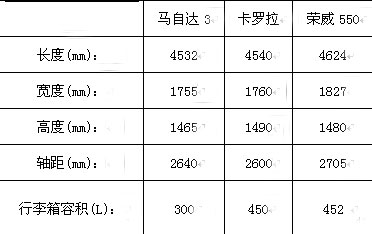 要實(shí)用,寬敞的空間不可或缺。而從三輛車(chē)型的車(chē)身尺寸來(lái)看,榮威550最占優(yōu)勢(shì)。