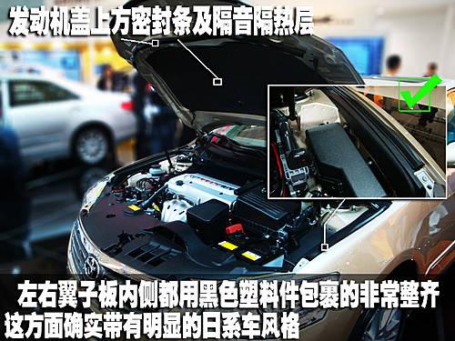 廣豐凱美瑞可以說是日系B級轎車中的代表作,其發(fā)動(dòng)機(jī)艙內(nèi)布局不僅工整而且在前格柵上方以及兩側(cè)翼子板這些空隙的地方都用塑料件覆蓋,提升了發(fā)動(dòng)機(jī)艙的整齊程度看上去非常嚴(yán)謹(jǐn)和美觀。
