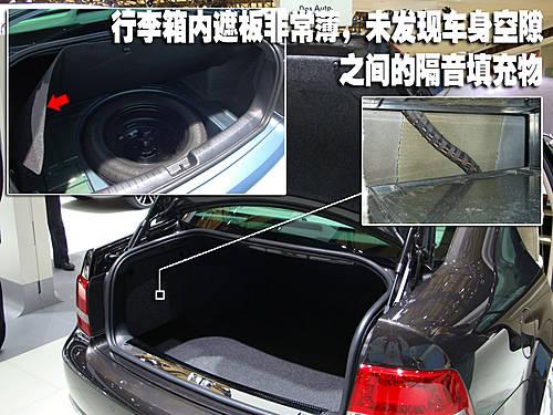 斯柯達(dá)昊銳應(yīng)該說(shuō)是這三款車型中最為厚道的一款,在其行李箱內(nèi)部的包裹材料與外側(cè)車身之間的空隙中,記者看到了非常厚實(shí)的一層隔音棉作為填充。