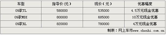 據(jù)謳歌經(jīng)銷商表示,購(gòu)買謳歌全系除了可以得到最高10萬(wàn)元的價(jià)格優(yōu)惠外,09款TL僅售53.5萬(wàn)元。銷售人員還表示,現(xiàn)在謳歌系列車型顏色和車型齊全,可以給客人與最大的選擇空間!