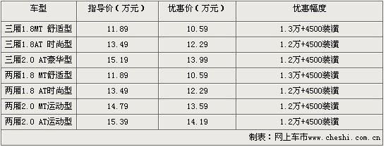 經(jīng)銷商表示,購買福克斯全系車型除了可以得到1.3萬元的現(xiàn)金優(yōu)惠外,還可以得到價(jià)值4500元汽車裝飾。優(yōu)惠后的?怂箖蓭1.8MT 舒適型售價(jià)僅為10.59萬。銷售人員還表示,目前福克斯大部分車型的有現(xiàn)車,顏色方面可選余地不大。