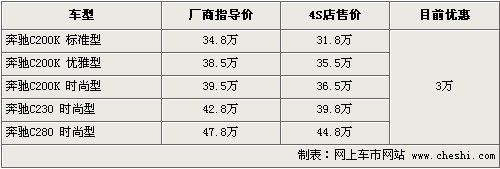 筆者從奔馳北京地區(qū)經(jīng)銷商處了解到,目前奔馳C級全系優(yōu)惠現(xiàn)金3萬元,C200K標(biāo)準(zhǔn)型優(yōu)惠售價僅為31.8萬,C230優(yōu)惠后僅售39.8萬,C280時尚型優(yōu)惠后售44.8萬元。目前4S店內(nèi)有銀色、黑色等款現(xiàn)車供應(yīng),消費(fèi)者可以到店試乘試駕,感受這款車的性能。