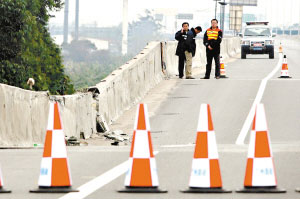 廣深高速的路政人員已經(jīng)趕到現(xiàn)場,在出事的橋面兩端放置了隔離欄,并拉起了警戒線。