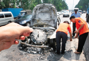 據(jù)現(xiàn)場有經(jīng)驗的司機推測,自燃原因估計是汽車在高溫情況下,電線短路或油箱漏油引發(fā)的,不過這一說法尚未得到證實。據(jù)悉,交警對此事已經(jīng)介入調查。(張配吉 陸璟)