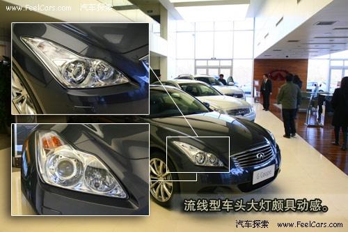 側(cè)面線條無疑是G37 Coupe與Saden車型區(qū)別最大,也是最誘人的部分。車頂流線造是標準的雙門Coupe造型,腰線直接延成為行李箱蓋并于面積巨大的尾燈連成一體。短小的后和行李箱形成刀切般的簡潔線條。