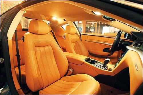 可別真的因?yàn)辇b牙咧嘴的車頭就對GranTurismo敬而遠(yuǎn)之。無論如何,GranTurismo渾身上下都閃耀著純正GT的光芒。為了平靜一下心情,請你仔細(xì)看看這幾張泛著貴族氣息的內(nèi)飾圖片,這里根本沒有用翻毛麂皮和碳纖維飾板組成的戰(zhàn)斗氣氛,有的只是一種GT的雅氣。而且這種豪華跑車在拉開車門的那一刻起就不斷地滿足著車主的虛榮心,三叉戟和手寫體的瑪莎拉蒂標(biāo)志總是有意無意地出現(xiàn)在眼前。