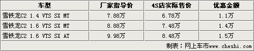 目前購買東風(fēng)雪鐵龍C2的消費(fèi)者不僅可以享受到最高1.5萬元的現(xiàn)金優(yōu)惠,而且還能得到商家隨車贈(zèng)送的部分車內(nèi)裝飾。據(jù)東風(fēng)雪鐵龍4S店銷售人員表示,目前只有C2運(yùn)動(dòng)版VTS的車型還在銷售,而且顏色比較單一,其余車型均沒有現(xiàn)車銷售。