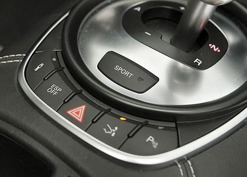 排檔座后方的“SPORT”按鍵,則是拉高駕馭感官的關(guān)鍵之一。在一般情形下,R tronic變速箱處于“Normal”模式,以著重舒適的邏輯進(jìn)行檔位切換,換檔時間較長。而按下“SPORT”按鍵,變速箱則轉(zhuǎn)為運(yùn)動模式:在A檔位下,換檔時間會明顯增快,換檔邏輯也以拉高轉(zhuǎn)速為標(biāo)準(zhǔn);而在手動模式下,此時檔位切換的間隔接近0.1秒,離合器的接合也更加直接;此外駕駛員也能隨心所欲的拉高轉(zhuǎn)速直至自動斷油,變速箱均不會主動介入進(jìn)行升檔,將帶來完整純粹的激情體驗。