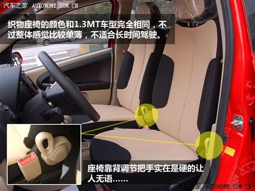 光從打開車門的第一感覺來說,熊貓給編者的感覺相當(dāng)不錯,深淺相間的座椅配色很符合熊貓的車名。但從實際乘坐感受來看,座椅還是給人以單薄的感覺,平直而缺乏支撐力,不適合長時間駕駛。同時,座椅靠背的調(diào)節(jié)扳手實在是太硬了,主駕左側(cè)的調(diào)節(jié)扳手所留給駕駛者伸手的空間又實在是非常小,僅操作了一次以后編者已經(jīng)滿頭大汗,希望這個只是個別現(xiàn)象而已。