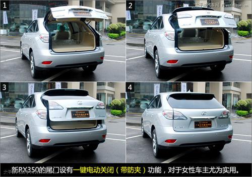 新RX350的尾門設有一鍵電動關閉(帶防夾)功能,對于身材嬌小的女性車主來說尤為實用。值得一提的是,這個價位的SUV中,配有該項功能的車型并不算多,像奔馳ML350等就沒有安裝該系統(tǒng)。