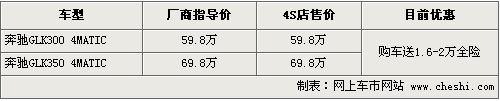 筆者從奔馳北京地區(qū)經(jīng)銷商處了解到,現(xiàn)在消費者購買奔馳GLK系列已經(jīng)不需要再加價,購車同時4S店可以贈送1.6萬-2萬元不等的全車保險,但是GLK兩款車在價格上還沒有出現(xiàn)優(yōu)惠幅度。現(xiàn)在店內(nèi)有銀色,白色等現(xiàn)車供應(yīng),內(nèi)飾有米色和灰色兩款可供選擇。