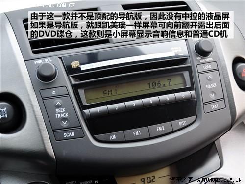 音響面板很簡(jiǎn)單,沒(méi)有導(dǎo)航版的那么復(fù)雜,只是一個(gè)小屏幕來(lái)顯示音響信息,當(dāng)然也沒(méi)有DVD,只是配備了普通的CD。整個(gè)中控面板的材料在視覺(jué)上都比較有質(zhì)感和光澤;【造型和三個(gè)圓的按鍵組合設(shè)計(jì)得和諧而美觀。