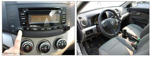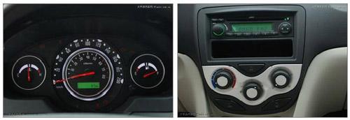不得不提的亮點(diǎn)是,同悅復(fù)合式的自發(fā)光儀表盤(pán)無(wú)需特意去開(kāi)啟,光線(xiàn)暗下來(lái)時(shí)就會(huì)自然變亮,外圈為時(shí)速表,內(nèi)圈為轉(zhuǎn)速表,左右兩側(cè)分別為水溫表和油表,非常漂亮,沒(méi)有像一些同級(jí)小型車(chē)那樣取消水溫表令人感到欣慰,這一點(diǎn)上確實(shí)體現(xiàn)了自主品牌的厚道。同悅儀表樣式效果都和凱美瑞很相像,充滿(mǎn)了立體感受。不過(guò)精細(xì)度程度仍然表明這只是經(jīng)濟(jì)自主小車(chē)。4個(gè)圓形空調(diào)出風(fēng)口比悅翔更時(shí)尚,CD下的儲(chǔ)物格也充分利用起來(lái)。