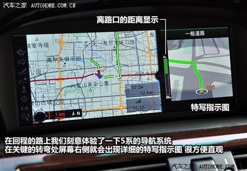 導(dǎo)航系統(tǒng)也是我們比較關(guān)心的內(nèi)容,在回程的路上我們將公司設(shè)置為目的地全程進(jìn)行語(yǔ)音導(dǎo)航。在左側(cè)主屏幕的右下方我們可以看到系統(tǒng)計(jì)算出的到達(dá)目的地的時(shí)間和距離,而每到需要轉(zhuǎn)彎或進(jìn)出主輔路時(shí),右側(cè)的小屏幕都會(huì)有具體的路線指示,同時(shí)旁邊有到達(dá)路口的精確距離顯示,視覺(jué)指引非常清晰。但是語(yǔ)音提示方面iDrive系統(tǒng)做的就不是很完美。雖然路上都是語(yǔ)音提示,比如“前方500米左轉(zhuǎn)”之類的,但真正到達(dá)路口時(shí)卻沒(méi)有任何語(yǔ)音提示,如果不熟悉路線只能通過(guò)看屏幕才能知道的確是在這里轉(zhuǎn)彎,但一般路口都是車多人雜的地方,在這里分心看屏幕的話可能會(huì)有安全隱患,這方面iDrive系統(tǒng)還有考慮的不太周全。