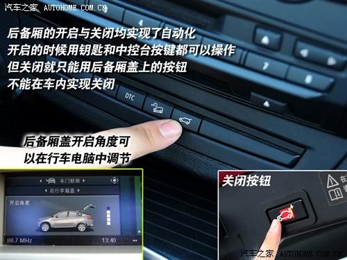 在音響操作區(qū)域下面有四個按鍵分別是倒車?yán)走_(dá)開關(guān)、DTC開關(guān)、下坡輔助開關(guān)和后備廂開啟按鈕。輕輕一按,X6的后備廂蓋就可以自動打開,但再輕輕一按,卻不會自動關(guān)閉,必須要下車去按后備廂蓋上的開關(guān)才可以關(guān)閉,在行車電腦中可以調(diào)節(jié)后備廂蓋的開啟角度。