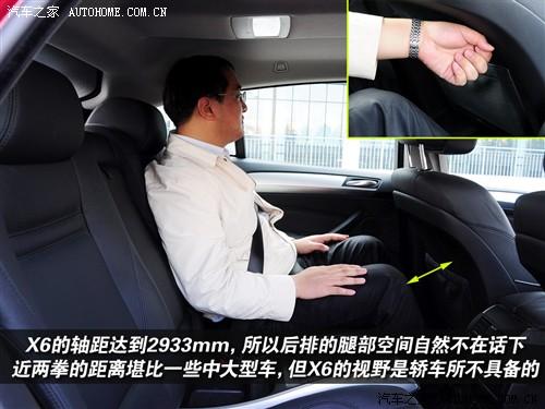 說到乘坐空間的話,這里就必須要批評一下X6了,雖然是四輪驅(qū)動(dòng),但后排的地板卻出乎意料地平整,有了如此優(yōu)越的先天條件,可是為什么一定要設(shè)計(jì)成4座車型呢?后排只有兩個(gè)座位,實(shí)在有點(diǎn)浪費(fèi)如此大的空間了。