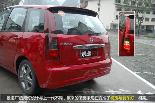 “景逸TT”的車頂充滿流線感,一道弧線向后銜接到擾流板,車牌上方長條設(shè)計使后部很有層次感,更立體化。