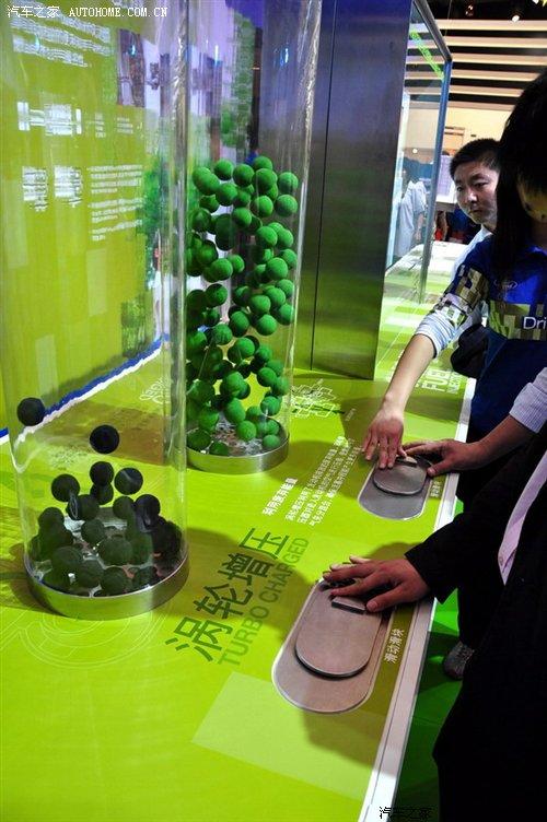 在福特的展臺,為了向大家演示福特的渦輪增壓技術(shù),福特特意設(shè)計(jì)了這個對比“吹小球”的裝置告訴大家:有渦輪增壓器的車型會比普通車型擁有更大的進(jìn)氣壓力。