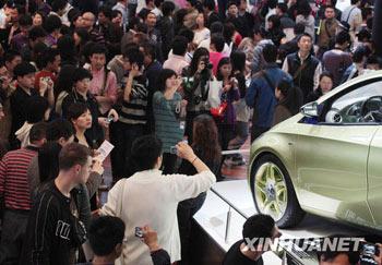 4月25日,2009上海國際車展開幕后迎來首個雙休日,當(dāng)日接待參觀者突破13.6萬人次,展車被“淹沒”在“人海”中。新華社發(fā)(吳長青 攝)