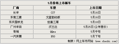 自主品牌唱主角 5月份將上市的六款新車(組圖)