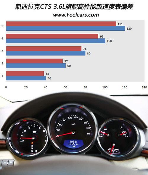 速度表的偏差繼承了凱迪拉克車型的一貫傳統(tǒng):偏差很大。100km/h的實際速度只有93km/h,而120km/h的實際速度只有111km/h,這在我們測試過的車型中是比較少見的。