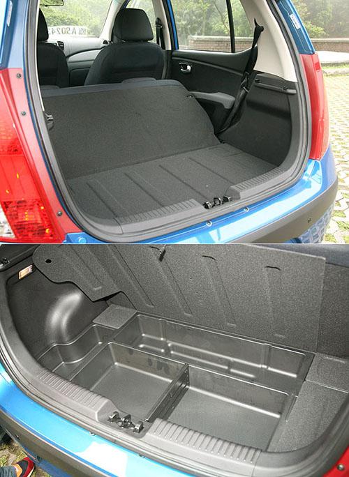 除了在乘坐空間帶來驚喜,i10后座還有一項特殊設(shè)計,那就是三點安全帶均有專屬的扣還收納位置,在不搭載乘員時必免扣環(huán)晃動產(chǎn)生噪音。而身為掀背車型,i10自然也提供后座椅放倒功能來擴充行李容積,可惜的是并不能左右分離前傾,放倒后也無法與行李廂底板形成平面,讓實用性受到減損,好在i10的行李廂底板下方設(shè)置了隱藏式的防水置物隔間,稍稍彌補了這項缺憾。