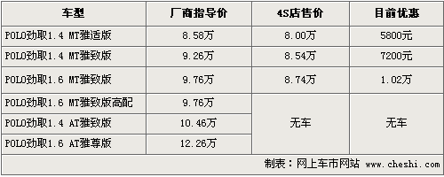 據(jù)銷售人員介紹,目前POLO勁情全系優(yōu)惠幅度從3900元-6000元不等,優(yōu)惠后售價從8.19萬-10.56萬元。同時,近期推出的POLO運動款也受到消費者喜愛,據(jù)銷售介紹,現(xiàn)車到店即買。運動款主要有藍色、黑色以及白色。目前POLO勁情以及運動版均已沒有現(xiàn)車供應,需預定,訂金為1萬,一個月時間才能提車。