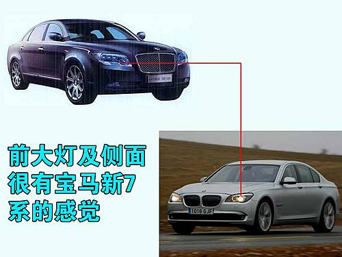 從側(cè)面看,能夠更直觀看出它與寶馬7系的相似度,同樣的車頂弧線、高腰線,甚至連多輻輪轂都相當(dāng)神似,不過(guò)寶馬所推崇的后窗內(nèi)旋弧度沒(méi)有被搬走。