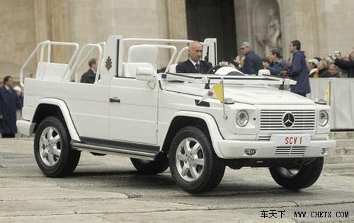 應(yīng)教皇本人的要求,奔馳公司為其專(zhuān)門(mén)生產(chǎn)了一輛敞篷版的白色G500教皇專(zhuān)用車(chē),該車(chē)的研發(fā)過(guò)程歷時(shí)兩年。教皇將用這輛梵蒂岡專(zhuān)用白色敞篷車(chē)在圣彼得廣場(chǎng)進(jìn)行慣常的周三賜見(jiàn)活動(dòng)。