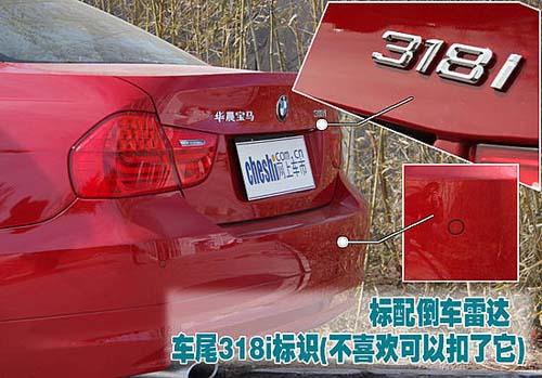 車尾兩側(cè)分別貼上了“華晨寶馬”和“318i”的字樣,為了駕駛者的泊車方便,這款車型還標(biāo)配了4探頭的泊車?yán)走_。