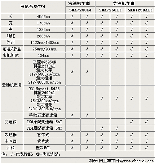 英倫TX4的長寬高分別是4566/1783/1823毫米,雖然是一款A(yù)級車的外形尺寸,但這款車的軸距為2883毫米,達(dá)到了一款B級車的水平。TX4分為汽油版和柴油版,汽油版搭載三菱4G69系列發(fā)動機(jī),而柴油版搭載大眾的R425柴油發(fā)動機(jī)。從動力數(shù)據(jù)方面來看,柴油版擁有低速高扭的特點(diǎn),而汽油版的最大功率達(dá)到112千瓦,而且具有很好的經(jīng)濟(jì)性。TX4汽油版匹配手動五速變速箱,而柴油版卻可以匹配原裝的五速自動變速箱。