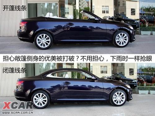 敞篷車需要什么呢?強悍的動力?精準的操控?NONONO!都不是,敞篷車需要的是拉風,本身開敞篷車就是對精神的追求,一種自然、愜意的追求。當然,不錯的運動性會讓敞篷車更加出彩,但是實拍文章無法完成對后者的了解,那就從“臉蛋兒”上看看IS300C夠不夠格兒吧。