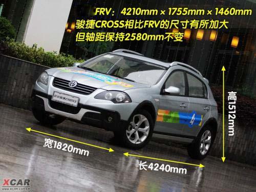 駿捷CROSS在FRV外觀基礎(chǔ)上進行了改進,雙U型的前臉設(shè)計更舉動感,進氣柵欄也由“雙腎式”設(shè)計改為鍍鉻裝飾的橫向輻條。輪轂也由普通的五幅鋁合金輪轂改為Y字型的五幅鋁合金輪轂。提升了最低離地間隙,駿捷FRV CROSS的通過性得到加強。