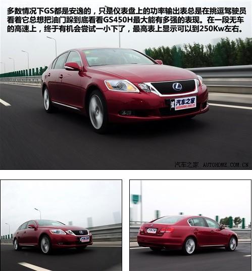 多數(shù)情況下GS450h都是安逸的,只是儀表盤上替代了發(fā)動(dòng)機(jī)轉(zhuǎn)速表的功率輸出表總是在挑逗著駕駛員?粗傆邢氚延烷T踩到底,看看這款車最大能輸出多大的功率。終于在沒什么車的一段高速公路上,我的這個(gè)心愿得到了滿足,一腳到底的油門,汽油發(fā)動(dòng)機(jī)和電動(dòng)機(jī)一起給后輪做工,我的身體被牢牢的貼在椅背上,功率表上的指針直到指向250Kw左右時(shí)才停住。在車速達(dá)到了200km/h時(shí),在車內(nèi)可以明顯的感覺到發(fā)動(dòng)機(jī)升到了最高檔位,功率也隨之降了下來,功率表的指針一下掉到了100Kw左右的位置。