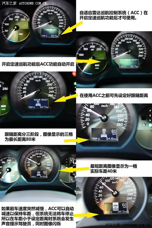 當然,這個距離也可以在ACC開始工作以后再做調整,編輯在北京的北四環(huán)上試了試這個功能,只要該功能處于工作狀態(tài),車頭雷達是一支捕捉前方車輛并與其保持設定距離。如果前方車輛駛離原車道,雷達便會捕捉更靠前一輛車,并提速至定速巡航設定的最高速度以便盡快使車輛與前車保持設定距離。如果前車緩慢減速,系統(tǒng)會自動給車輛減速保持車距,但該系統(tǒng)是無法將車輛完全剎停的,當雷達發(fā)現(xiàn)與前車距離小于設定距離,且自動減速的效果不好的時候便會發(fā)出警告音提示駕駛員采取措施,同時,中央顯示屏上的圖像開始閃爍。