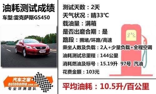 在油耗這個(gè)測(cè)試環(huán)節(jié),汽車之家專業(yè)測(cè)試團(tuán)隊(duì)為了模擬消費(fèi)者日常駕駛場(chǎng)景,特意選擇了雷克薩斯GS450h有可能出現(xiàn)的各種路面進(jìn)行油耗的測(cè)試,以求得出一個(gè)盡量公正的油耗成績(jī)。我們共駕駛GS450h行駛了144公里,其中包括大約75公里非常嚴(yán)重的城市擁堵路段,30公里的車輛較少的高速公路,剩下的35公里是城市環(huán)路和城郊公路。在整個(gè)測(cè)試過(guò)程中,車內(nèi)乘員2名,另裝載小于10公斤的物品,最終得出的成績(jī)是百公里油耗10.5升。作為一款中大型的轎車來(lái)講,GS450h的油耗成績(jī)編輯個(gè)人表示非常滿意,但作為一款混合動(dòng)力車型來(lái)講,這款車就有點(diǎn)鋪張浪費(fèi)了,混動(dòng)車型的初衷就是要靠電動(dòng)機(jī)輔佐發(fā)動(dòng)機(jī)工作,以使得車輛整體的耗油量降低。