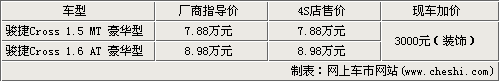 自6月18日,華晨汽車(chē)旗下中華駿捷Cross上市以來(lái),市場(chǎng)對(duì)該車(chē)的關(guān)注度不斷上升。它憑借最為潮流的外觀(guān)、更加舒適的駕乘空間,給消費(fèi)者帶來(lái)跨界車(chē)的新感受。據(jù)筆者了解,北京目前購(gòu)買(mǎi)中華駿捷Cross除個(gè)別經(jīng)銷(xiāo)商現(xiàn)車(chē)不加價(jià)外,其余經(jīng)銷(xiāo)商提現(xiàn)車(chē)均需加3000元的裝飾款。