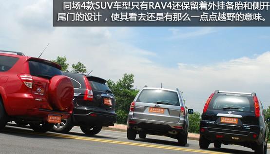 RAV4是國產(chǎn)豐田陣型中體積最小的SUV車型,但也運(yùn)用了其余兩個老大哥的一些設(shè)計元素。引擎罩上兩條隆起的肌線露出些許SUV的氣勢,修長的車身線條使整車看起來毫不失色于其他對手。RAV4是同場4款SUV車型唯一還保留著外掛備胎的設(shè)計,使RAV4從后方看去還是有那么一點(diǎn)點(diǎn)越野的性格。