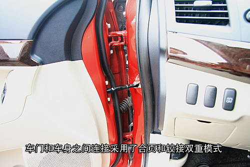 車門比同級別的日系車要沉些,感覺內(nèi)在設計和扎實。此外,車門和車身之間連接采用了合頁和鉸接雙重模式。