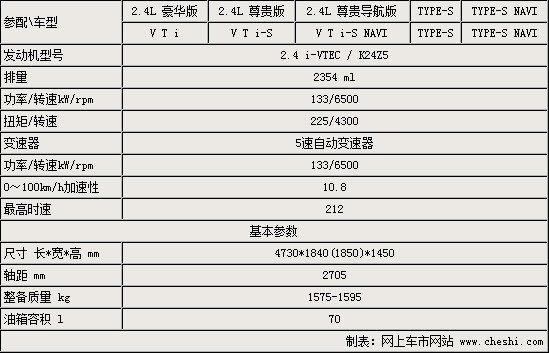 從目前我們得到的官方配置表中可以肯定,東風(fēng)本田首批推出的將全部為2.4升直列引擎車款,全系搭配5擋手動(dòng)自動(dòng)一體變速器,并且全系車型都配備了方向盤后的換擋撥片,即便您購買2.4升入門車款也能夠得到F1車手一般的換擋樂趣。