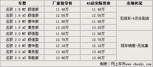 據(jù)北京地區(qū)現(xiàn)代4S店銷售人員表示,現(xiàn)在各4S店內(nèi)均有MOINCA名馭2.0L現(xiàn)車銷售,由于是剛剛上市的新車,所以在價格方面沒有任何優(yōu)惠。至于1.8L車型,銷售人員則表示,1.8L車型要到9月份才能到店,目前接受現(xiàn)金預定。銷售人員還表示,1.8L的MOINCA名馭將主要面對出租車市場,所以客戶需要等待較長一段時間。