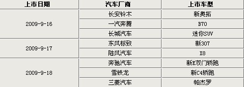 在“金九銀十”的銷(xiāo)售旺季中,許多汽車(chē)廠(chǎng)商都選擇在這個(gè)時(shí)候推出自己的新車(chē)。下周從16號(hào)-18號(hào)就有8款新車(chē)將集中上市,它們分別為新奧拓、奔騰2010款B70、長(zhǎng)城迷你SUV、標(biāo)致新307、陸風(fēng)X8、奔馳E雙門(mén)轎跑、雪鐵龍C4轎跑車(chē)和三菱新帕杰羅,其中自主品牌車(chē)型占了主要部分。汽車(chē)廠(chǎng)商選擇在這個(gè)時(shí)期集中推出新車(chē),不僅可以在“金九銀十”的銷(xiāo)售旺季提升銷(xiāo)量,而且也為消費(fèi)者提供更多的車(chē)型選擇。